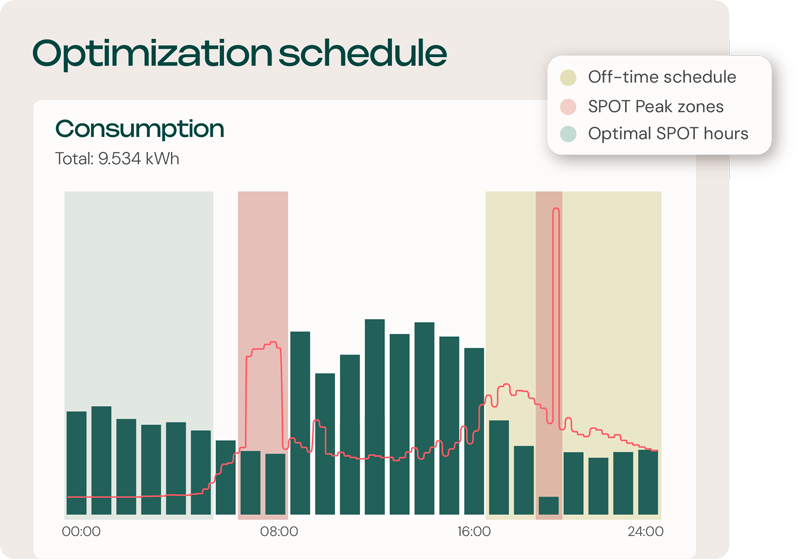 With Elevolt, you can take control of your electricity consumption by setting schedules manually or according to the best SPOT hours, understand patterns, and adjust accordingly to meet your sustainability and financial targets